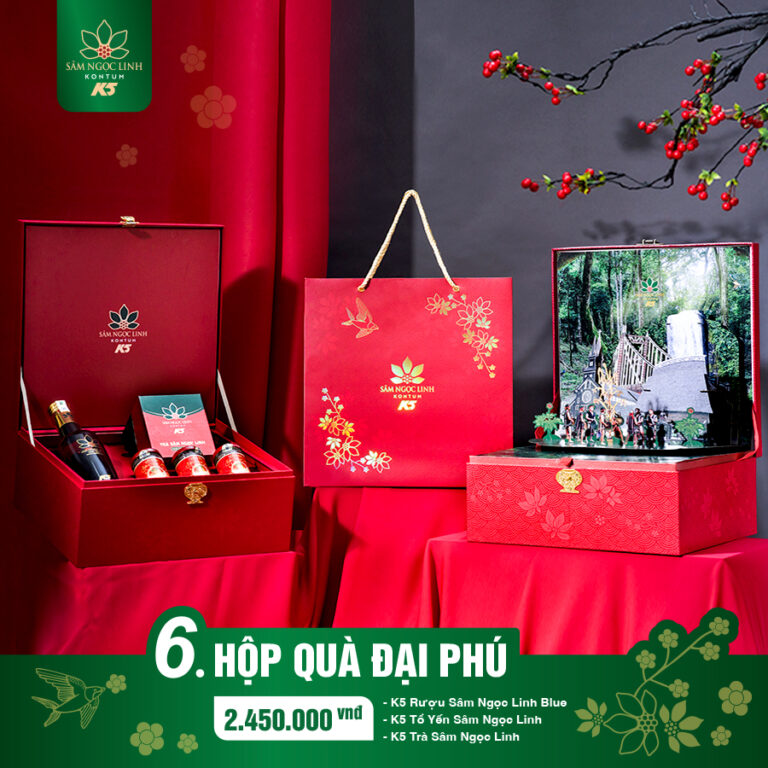 Hộp Quà Đại Phú là món quà Tết sang trọng, mang thông điệp "sức khỏe là tài – phú quý là lộc", kết hợp các tinh phẩm quý từ sâm Ngọc Linh và tổ yến – những đặc sản thượng hạng của Việt Nam. Mỗi sản phẩm được tuyển chọn kỹ lưỡng, đóng gói tinh tế, là món quà đầu năm thể hiện sự trân quý và tinh tế của người trao, gửi gắm lời chúc sức khỏe và thịnh vượng.