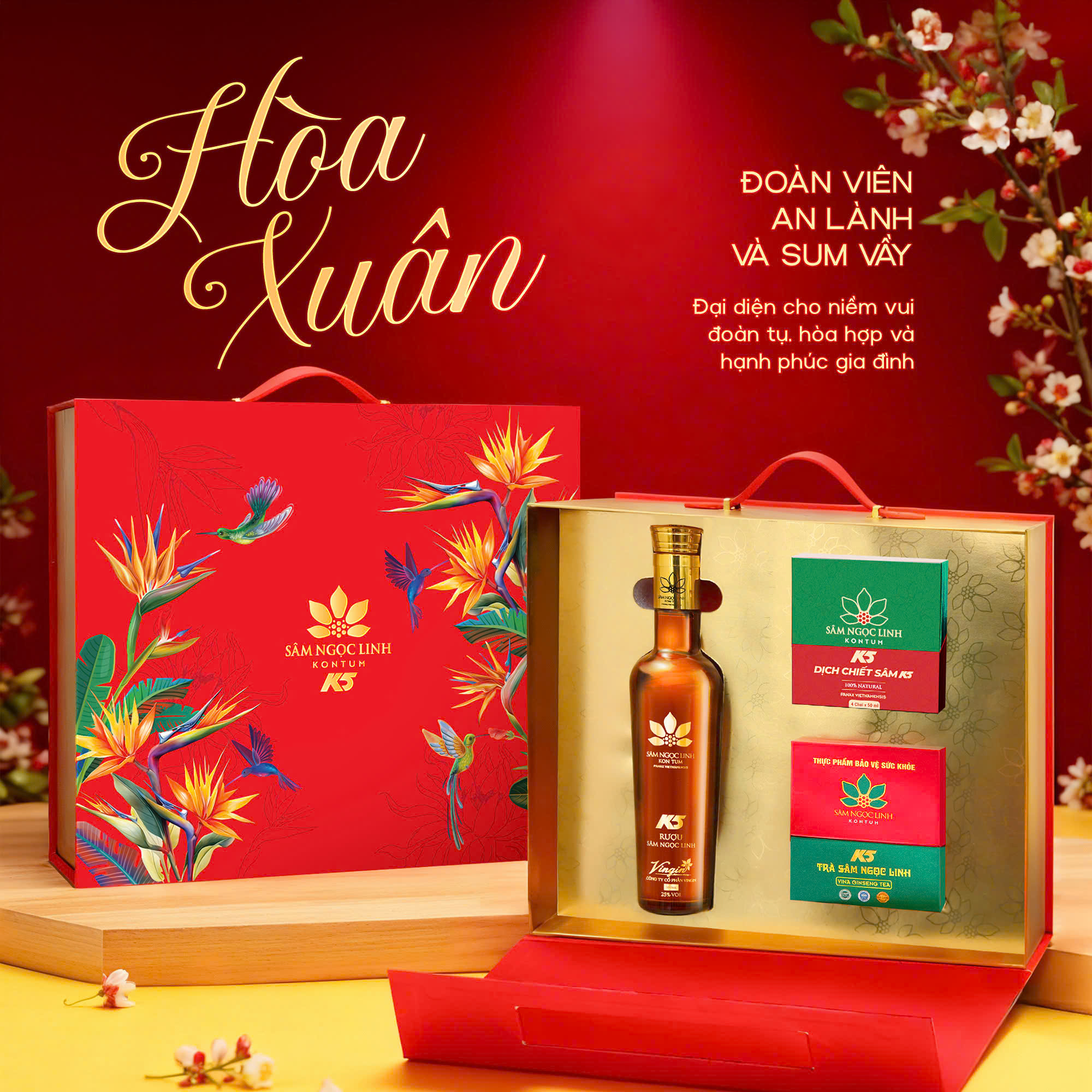 K5 – Trà Sâm Ngọc Linh (15 gói): Trà dưỡng sinh được chế biến từ Sâm Ngọc Linh cùng các thảo dược quý, mang hương vị thanh tao, giúp thanh lọc cơ thể, giảm stress và cải thiện tinh thần. Mỗi tách trà là một khoảnh khắc thư giãn, nhẹ nhàng và an yên giữa nhịp sống bận rộn.