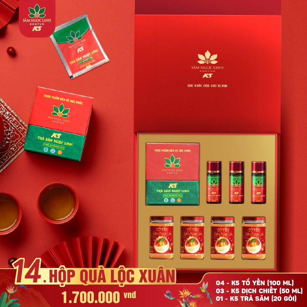 Lộc Xuân 2024 là món quà Tết mang thông điệp "sức khỏe là phúc – an khang là lộc", kết hợp ba tinh phẩm quý từ Sâm Ngọc Linh – Quốc bảo Việt Nam. Mỗi sản phẩm trong hộp đều được tuyển chọn kỹ lưỡng, đóng gói tinh tế, xứng đáng là món quà đầu năm thể hiện tấm lòng trân quý và sự tinh tế của người trao.