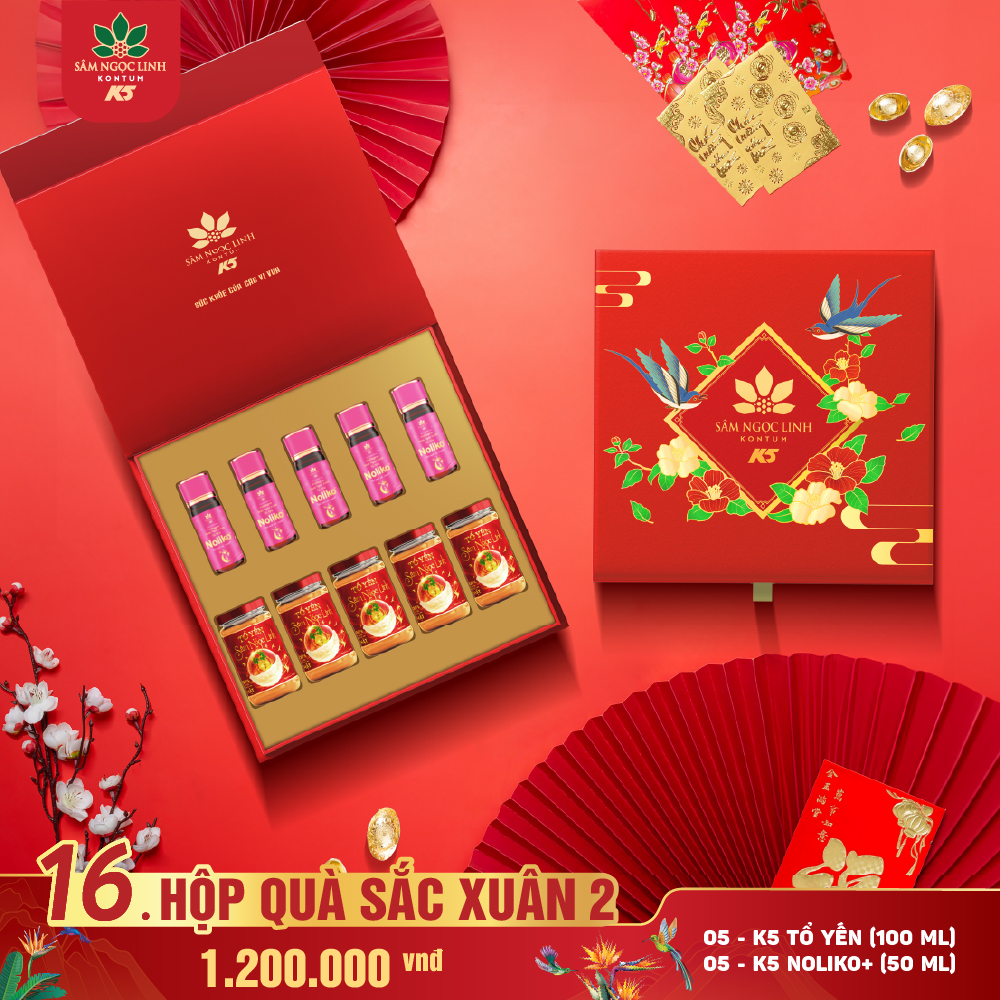 Hộp Quà Sắc Xuân 2 2025 là món quà Tết cao cấp, mang thông điệp "sức khỏe là phúc – sắc đẹp là lộc", kết hợp các tinh phẩm quý từ sâm Ngọc Linh và tổ yến – những đặc sản thượng hạng của Việt Nam. Mỗi sản phẩm được tuyển chọn kỹ lưỡng, đóng gói tinh tế, là món quà đầu năm thể hiện sự trân quý và tinh tế, gửi gắm lời chúc rạng rỡ, khỏe mạnh và thịnh vượng.