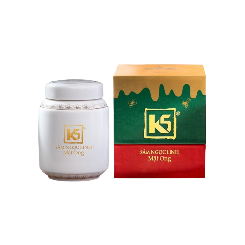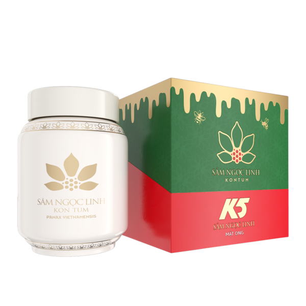 Hủ 250ml: củ Sâm Ngọc Linh Kon Tum trên 10 tuổi, tươi, được cắt lát, ngâm với mật ong rừng tự nhiên của vùng núi Ngọc Linh, không chất bảo quản, không hương liệu (tỷ lệ 25gr sâm/ 250ml mật)