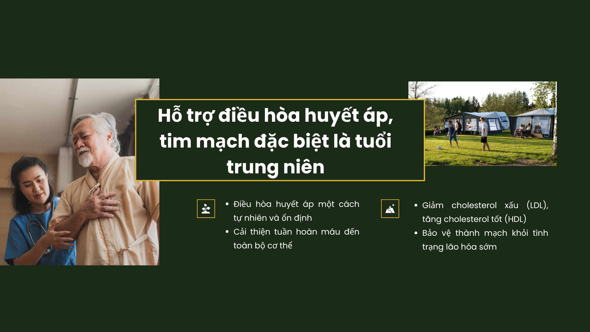 3. Hỗ trợ điều hòa huyết áp, tim mạch đặc biệt là tuổi trung niên