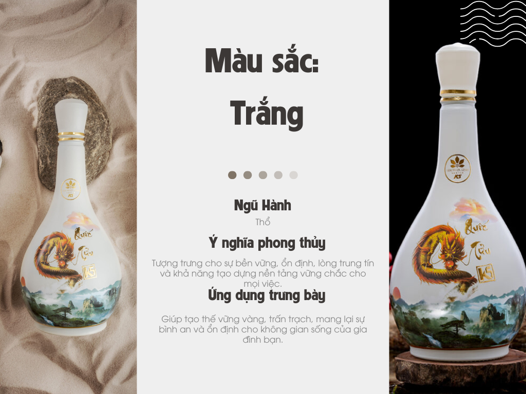 Đây chính là yếu tố biến Quốc Tửu K5 từ một chai rượu thành một vật phẩm phong thủy đầy quyền năng, giúp cân bằng năng lượng và mang lại may mắn cho gia chủ. Mỗi màu sắc không chỉ đẹp về mặt thị giác mà còn ẩn chứa những ý nghĩa sâu xa, chờ đợi bạn khám phá và lựa chọn để phù hợp với mệnh của mình.