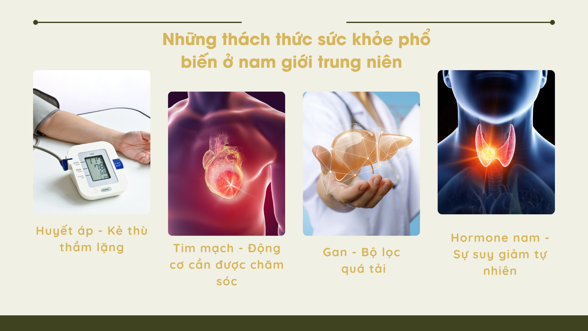 Ở độ tuổi trung niên và cao niên, cơ thể người đàn ông thường phải đối mặt với nhiều thách thức sức khỏe: giảm hormone testosterone, suy giảm chức năng các cơ quan, hệ miễn dịch yếu đi, và áp lực công việc tích lũy qua nhiều năm. Chính vì thế, sức khỏe của Cha cần được chăm sóc và bồi bổ một cách khoa học, điều độ