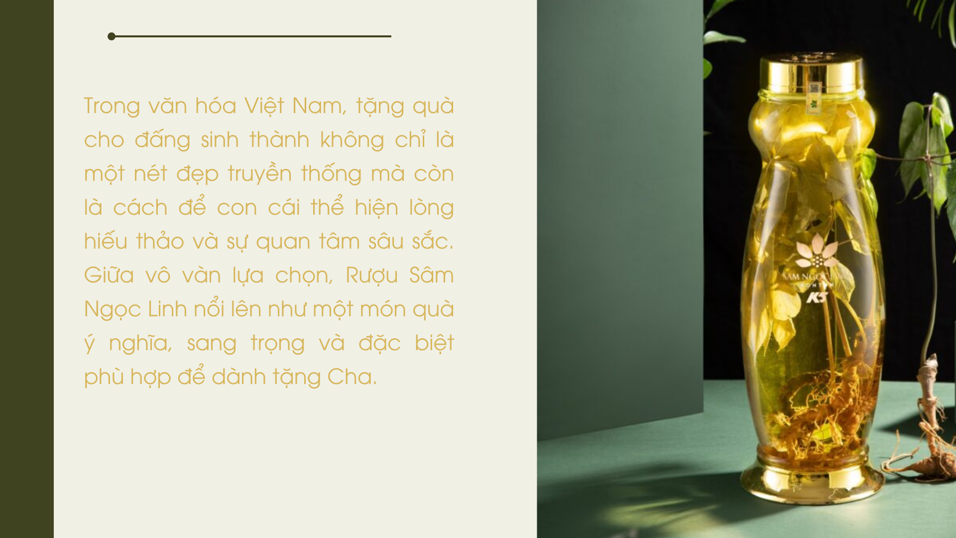 Khi bạn tặng cha một bình rượu Sâm Ngọc Linh là bạn đang trao gửi cả một thông điệp sâu lắng: