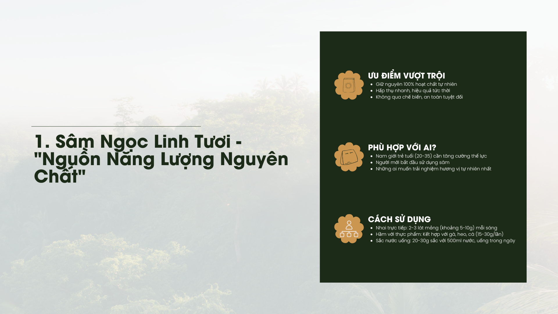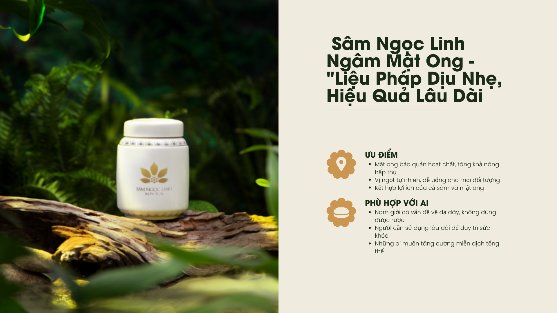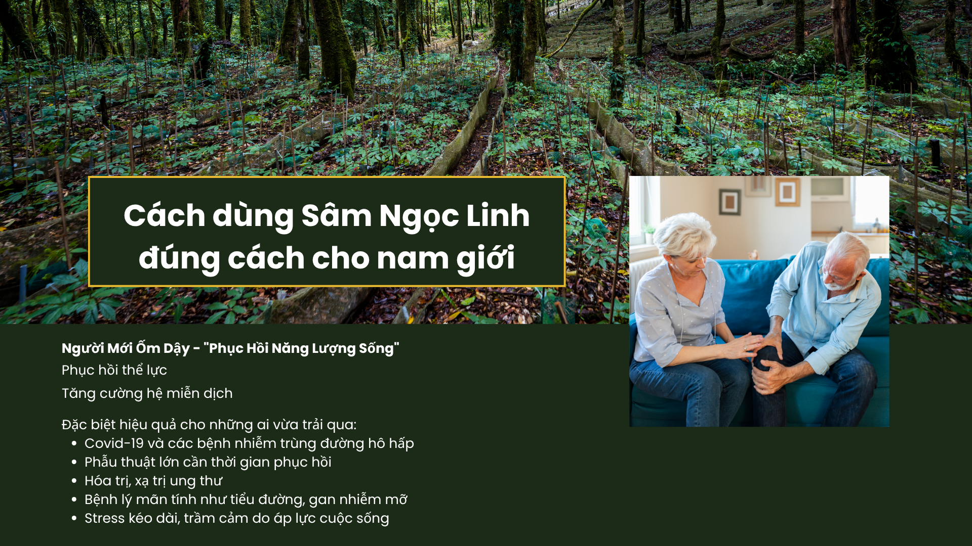 Được mệnh danh là "vua của các loại sâm", Sâm Ngọc Linh không chỉ đơn thuần là một vị thuốc quý. Đây còn là người bạn đồng hành đáng tin cậy giúp nam giới tự tin hơn trong cuộc sống hàng ngày.