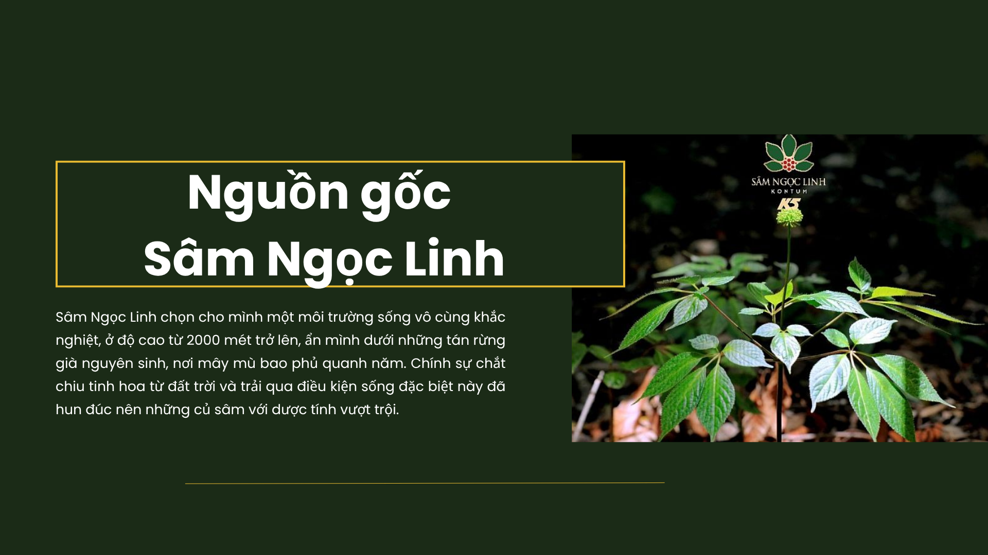 Sâm Ngọc Linh mang trong mình một câu chuyện đầy kỳ diệu. Đây không phải là loại sâm có thể tìm thấy ở bất cứ đâu trên thế giới, mà là "báu vật" độc nhất, chỉ sinh trưởng và phát triển mạnh mẽ trên đỉnh núi Ngọc Linh hùng vĩ, thuộc địa phận hai tỉnh Kon Tum và Quảng Nam.