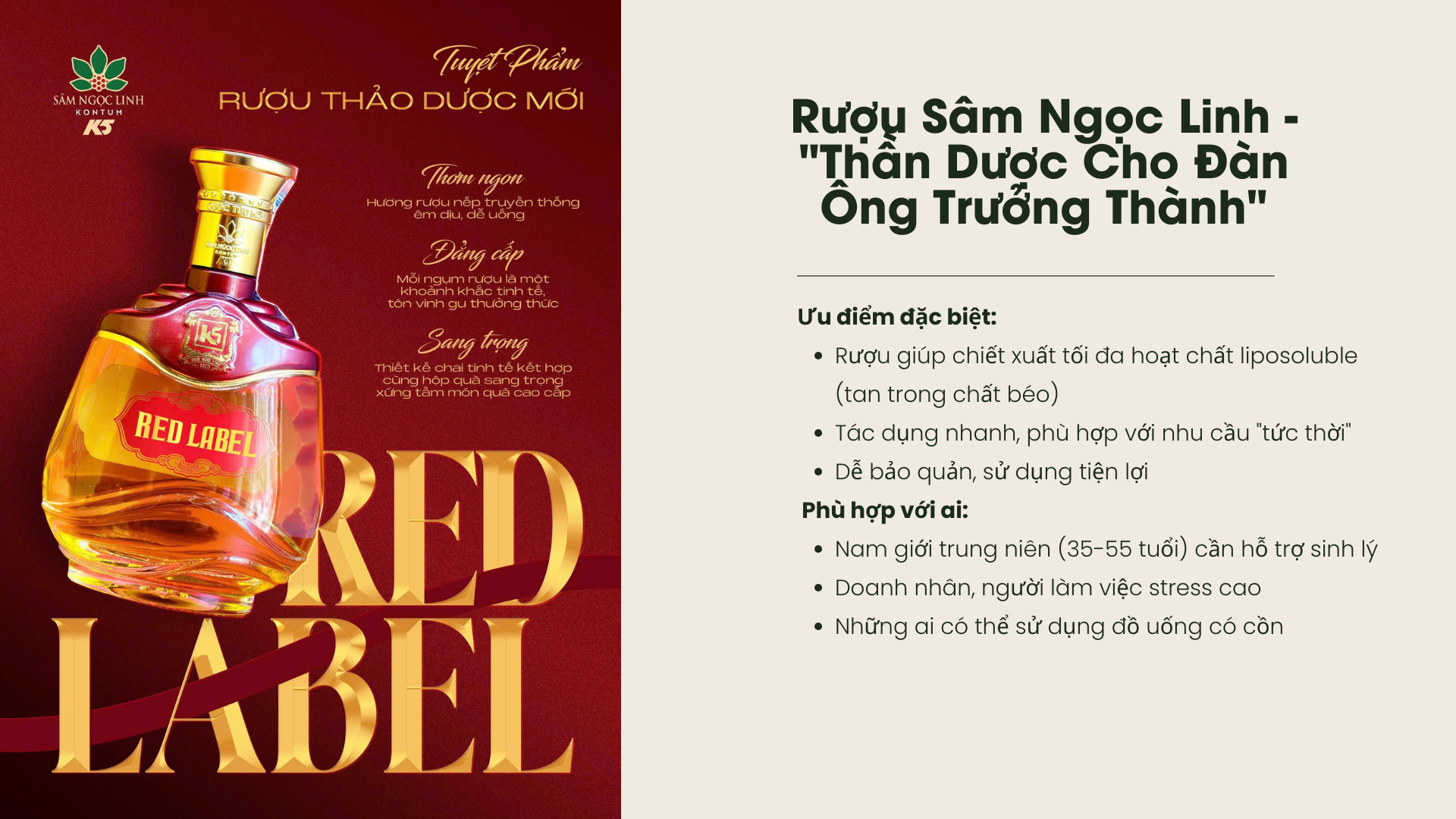 Khám phá Rượu Red Label K5: sự kết hợp hoàn hảo giữa nếp cái hoa vàng, sâm Ngọc Linh và hồng sâm. Tìm hiểu công dụng tăng cường sinh lực, đánh giá chi tiết, cách dùng hiệu quả và giá bán ưu đãi.
