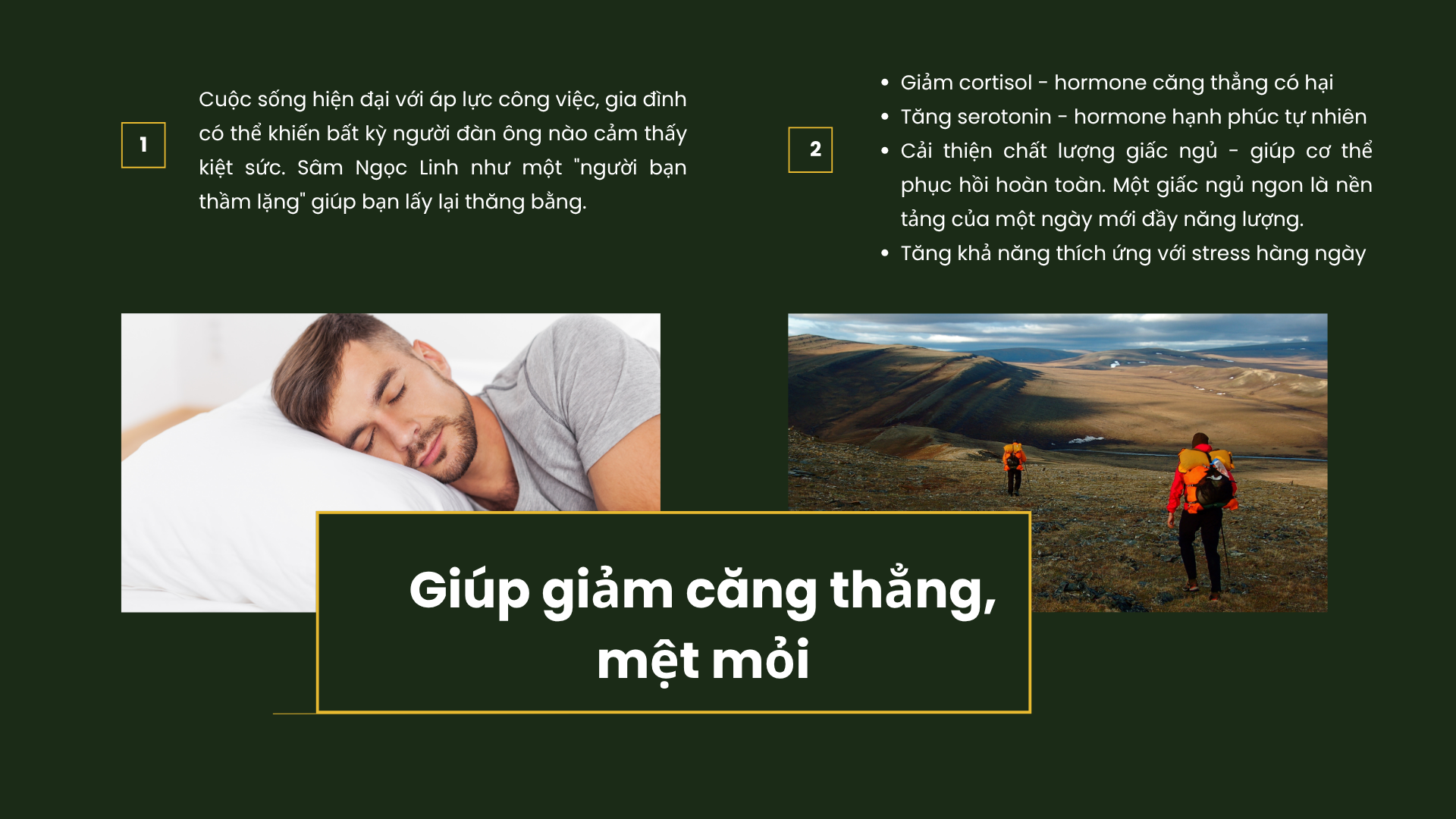 Cuộc sống hiện đại với áp lực công việc, gia đình có thể khiến bất kỳ người đàn ông nào cảm thấy kiệt sức. Sâm Ngọc Linh như một "người bạn thầm lặng" giúp bạn lấy lại thăng bằng.