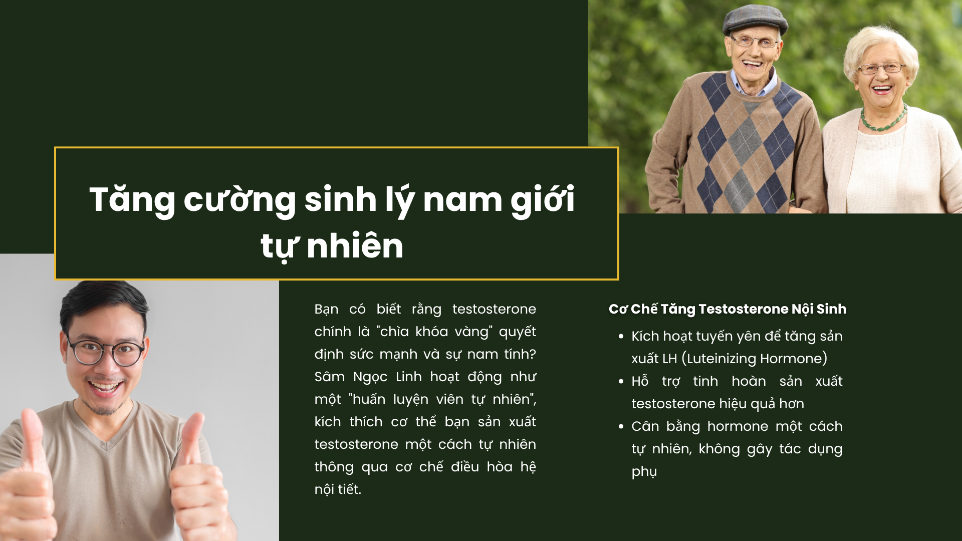 Ngoài tăng cường sinh lực, sâm Ngọc Linh hỗ trợ trị yếu sinh lý hiệu quả hơn thuốc tây nhờ cơ chế tự nhiên Tăng Testosterone Nội Sinh