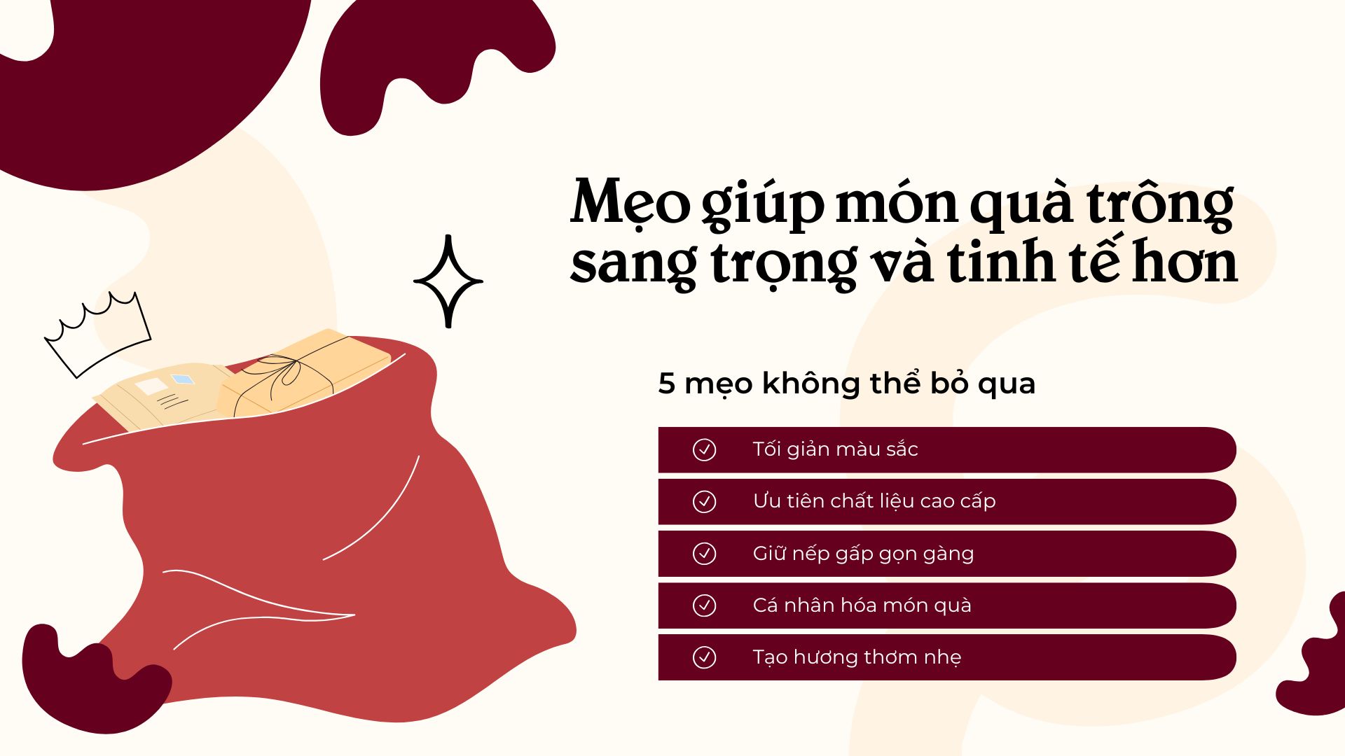 Thực tế, bạn không cần phải khéo tay mới có thể gói quà đẹp. Chỉ cần một chút tỉ mỉ và vài mẹo nhỏ, bạn hoàn toàn có thể tạo ra những món quà vừa sang trọng, vừa ý nghĩa ngay tại nhà.