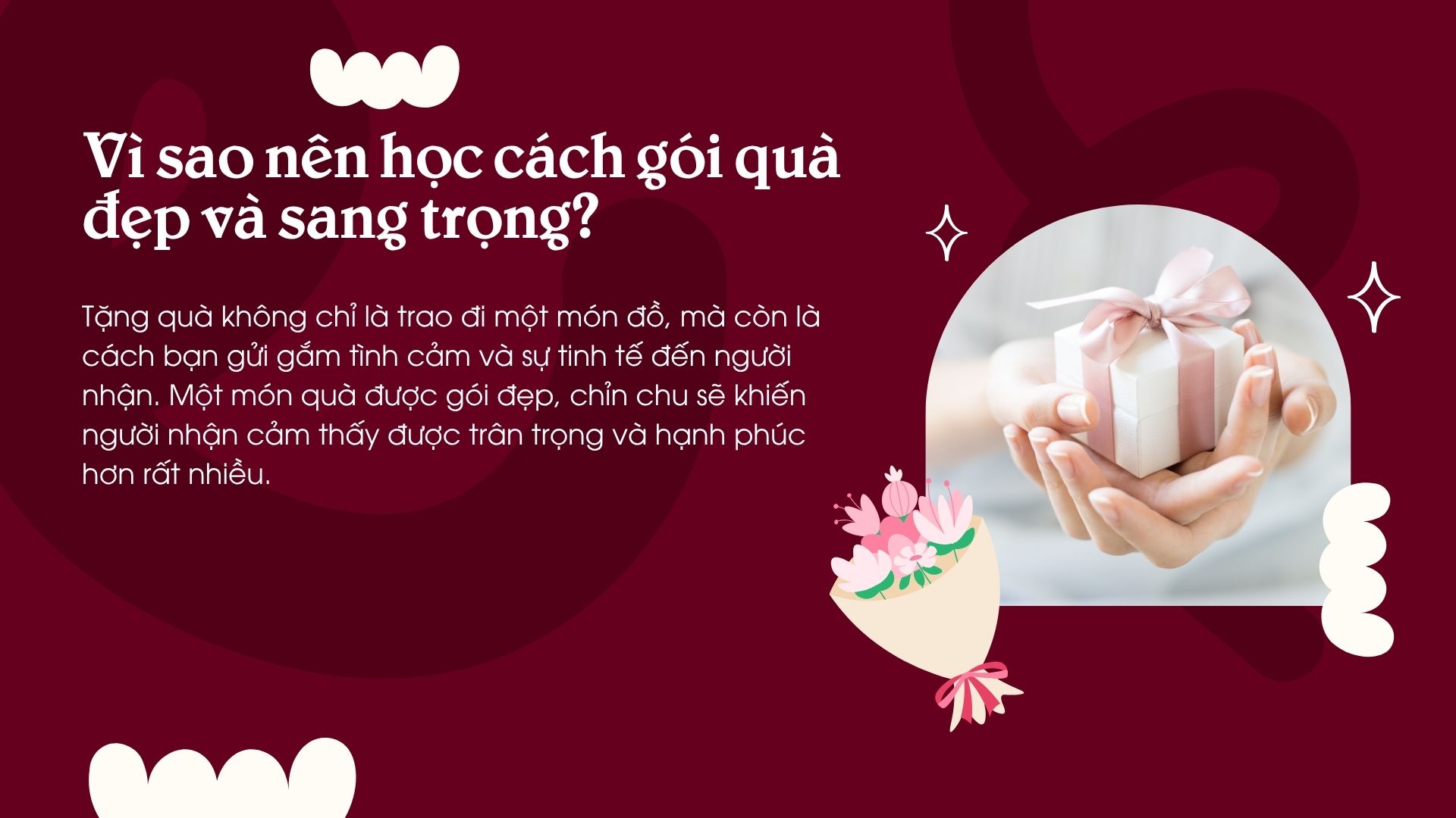 Tặng quà không chỉ là trao đi một món đồ, mà còn là cách bạn gửi gắm tình cảm và sự tinh tế đến người nhận. Một món quà được gói đẹp, chỉn chu sẽ khiến người nhận cảm thấy được trân trọng và hạnh phúc hơn rất nhiều.