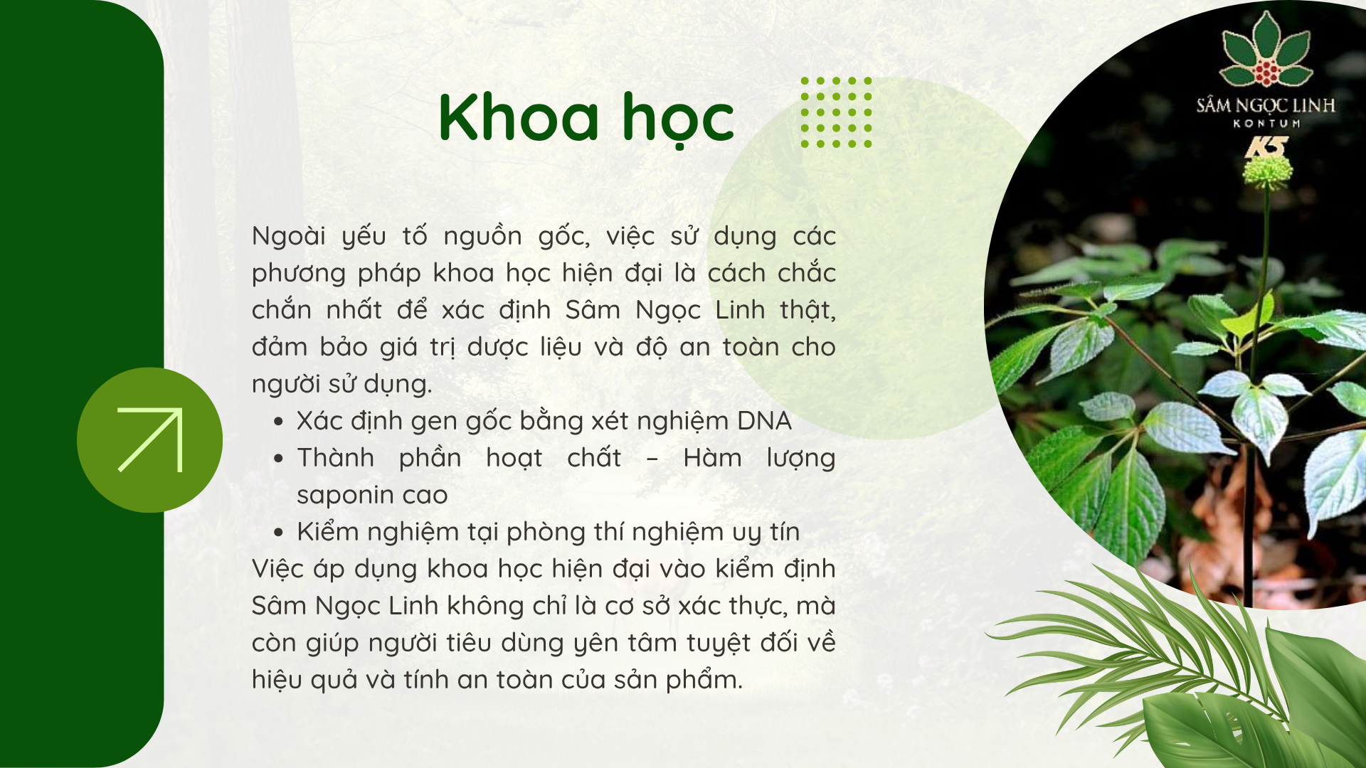 Việc áp dụng khoa học hiện đại vào kiểm định Sâm Ngọc Linh không chỉ là cơ sở xác thực, mà còn giúp người tiêu dùng yên tâm tuyệt đối về hiệu quả và tính an toàn của sản phẩm.