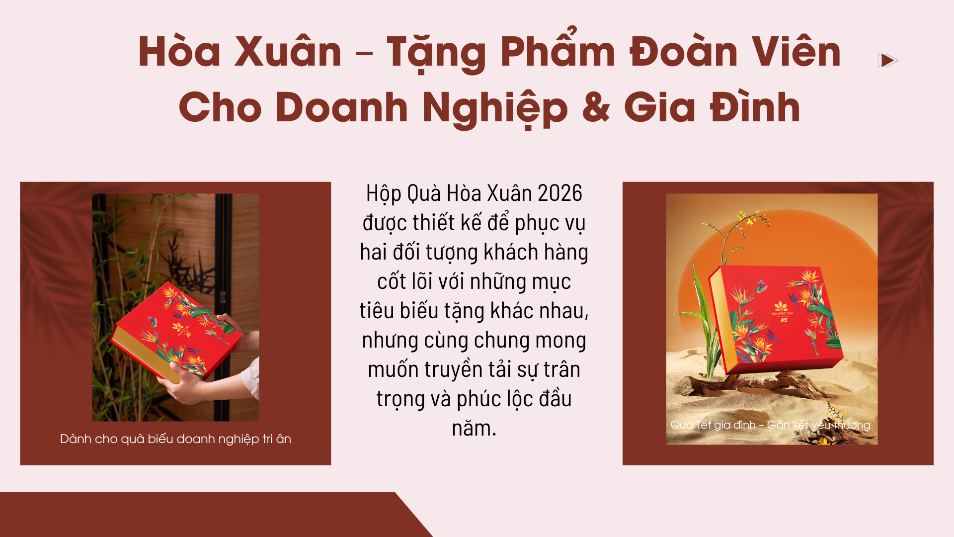 Trong môi trường kinh doanh, quà Tết là một chiến lược đầu tư vào mối quan hệ. Hộp Quà Hòa Xuân 2026 là lựa chọn hoàn hảo để đại diện cho thương hiệu của bạn: