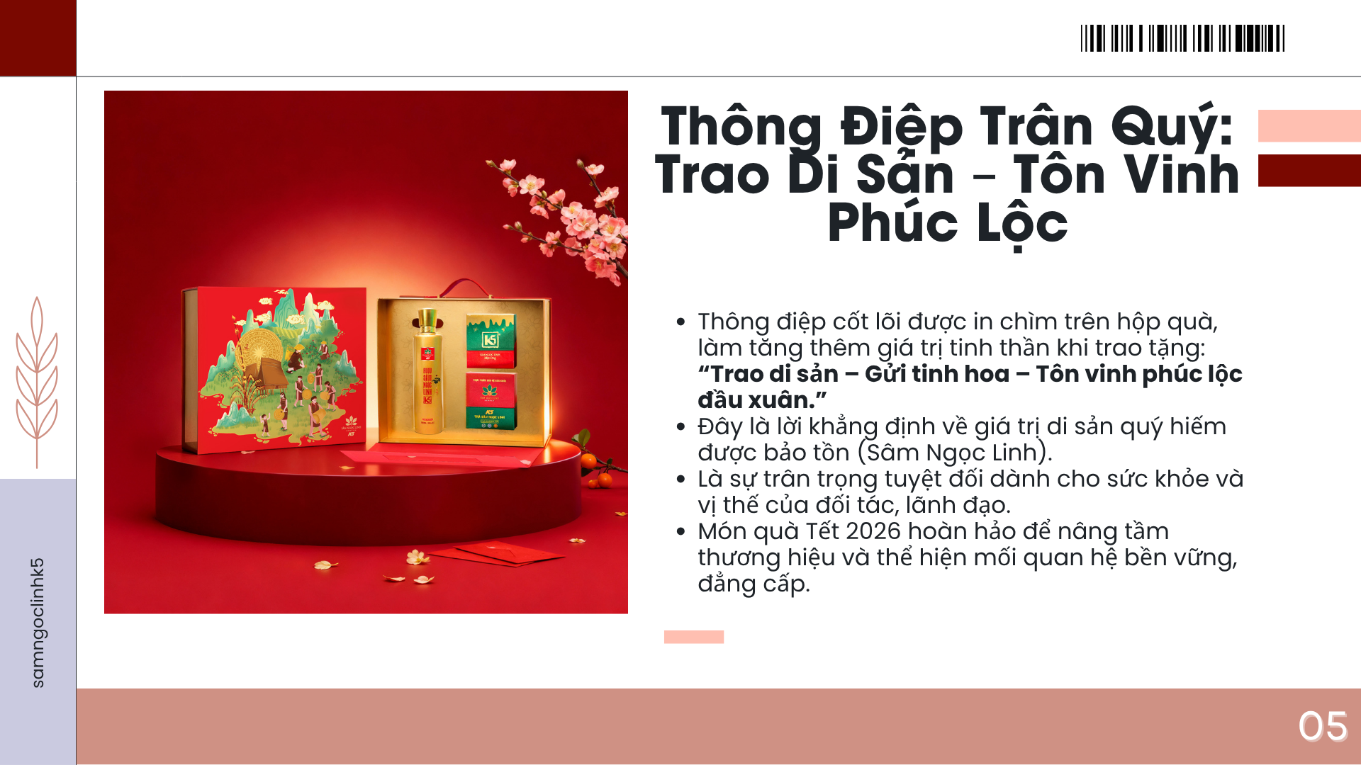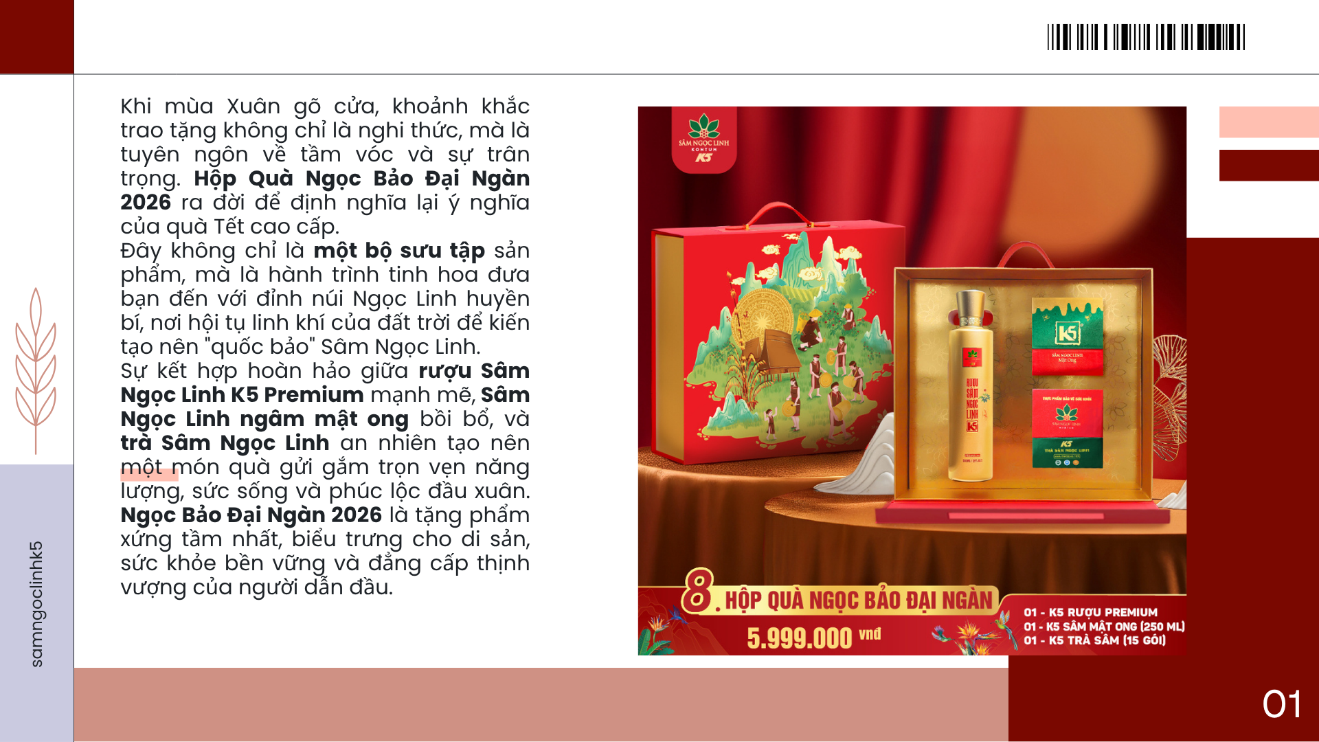 Khám phá 8 hộp quà Tết doanh nghiệp 2026 độc quyền từ Sâm Ngọc Linh K5 – kết tinh tinh hoa đại ngàn, gửi trọn lời chúc phúc xuân thịnh vượng, sức khỏe và may mắn đến đối tác, khách hàng.