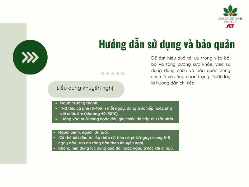 Để đạt hiệu quả tối ưu trong việc bồi bổ và tăng cường sức khỏe, việc sử dụng đúng cách và bảo quản đúng cách là vô cùng quan trọng. Dưới đây là hướng dẫn chi tiết: