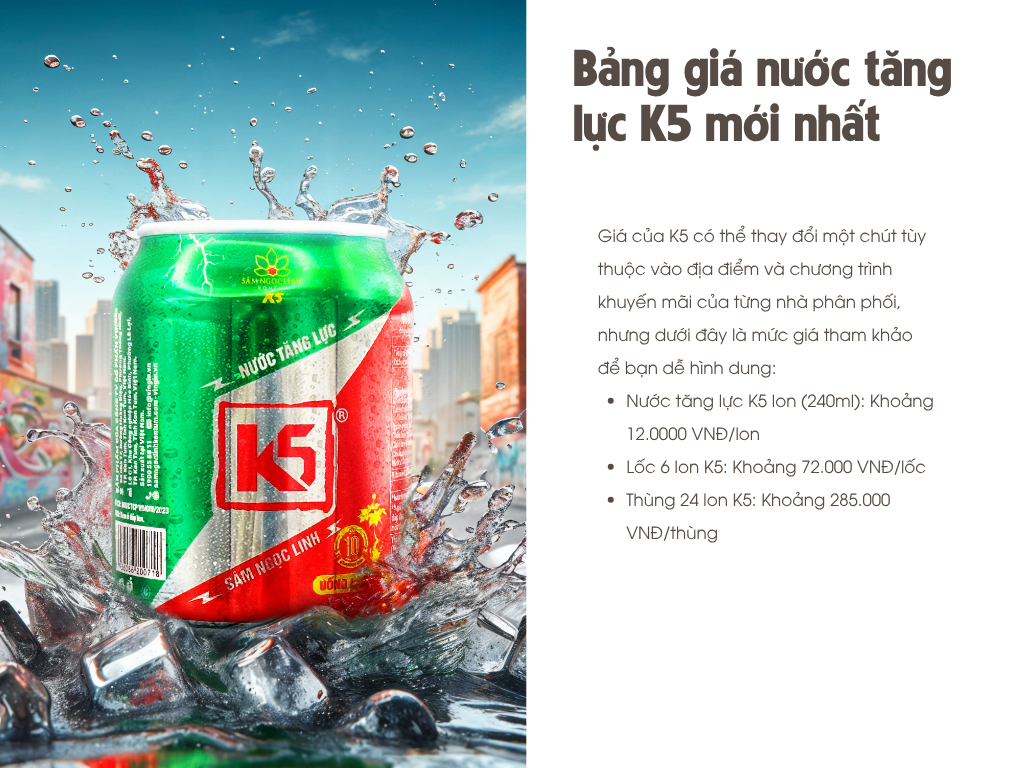 Cập nhật giá nước tăng lực sâm K5 mới nhất! Tìm hiểu địa chỉ mua hàng uy tín và công dụng đặc biệt của sản phẩm này.