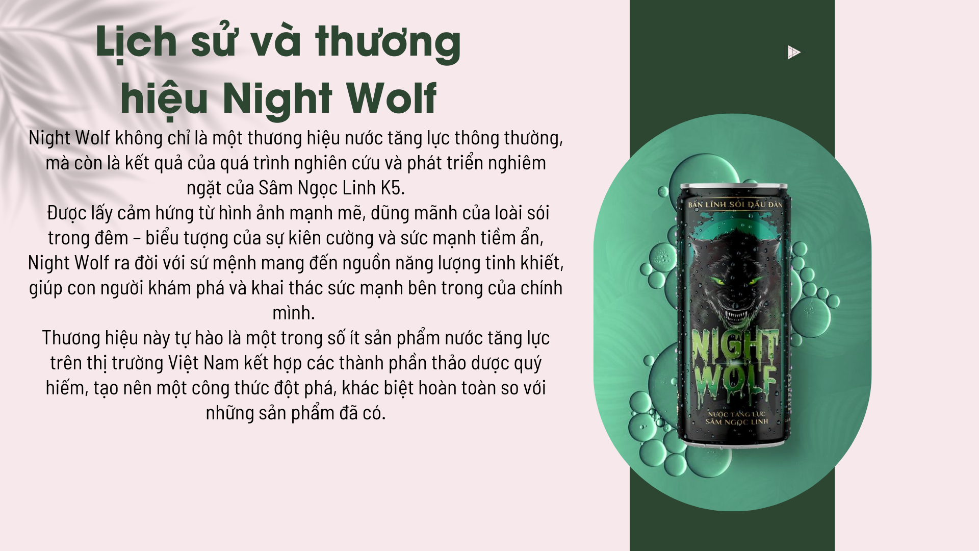 Night Wolf không chỉ là một thương hiệu nước tăng lực thông thường, mà còn là kết quả của quá trình nghiên cứu và phát triển nghiêm ngặt của Sâm Ngọc Linh K5.