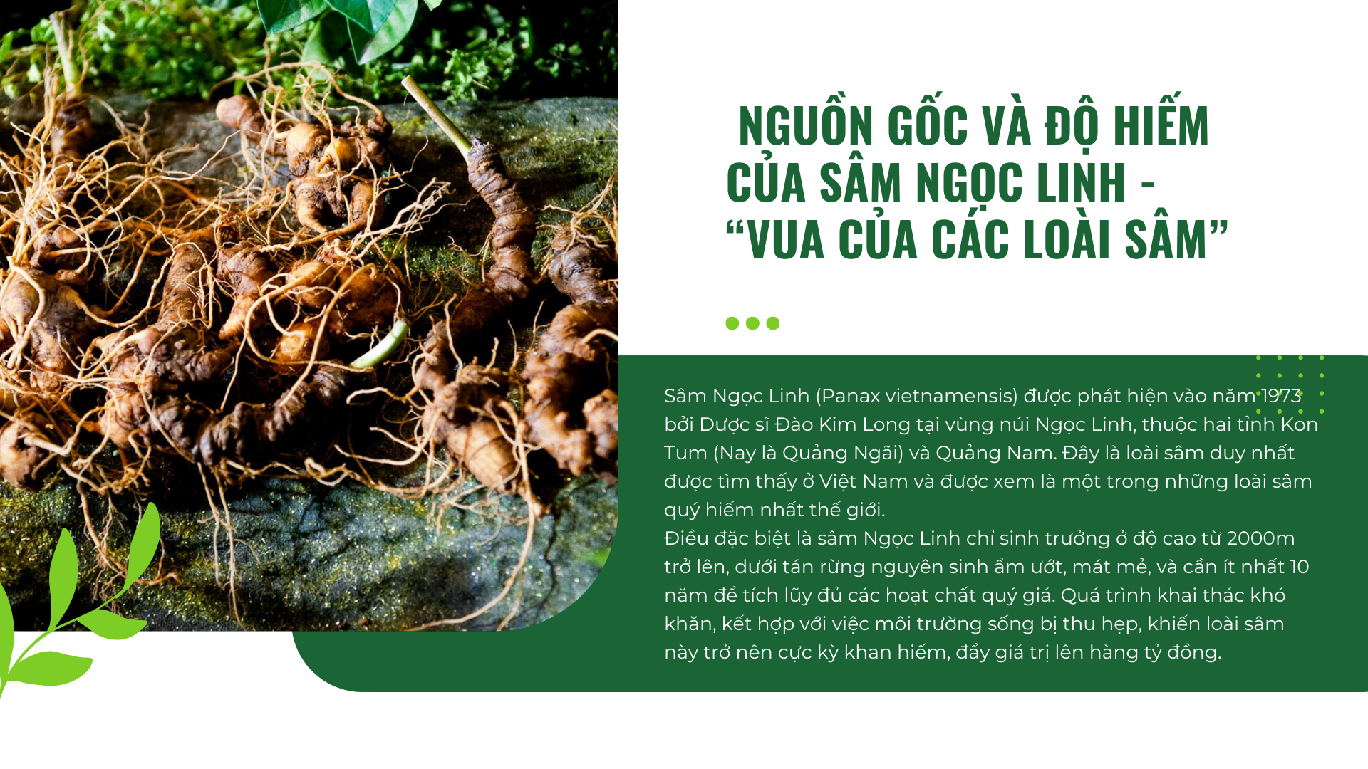 Điều đặc biệt là sâm Ngọc Linh chỉ sinh trưởng ở độ cao từ 2000m trở lên, dưới tán rừng nguyên sinh ẩm ướt, mát mẻ, và cần ít nhất 10 năm để tích lũy đủ các hoạt chất quý giá. Quá trình khai thác khó khăn, kết hợp với việc môi trường sống bị thu hẹp, khiến loài sâm này trở nên cực kỳ khan hiếm, đẩy giá trị lên hàng tỷ đồng.