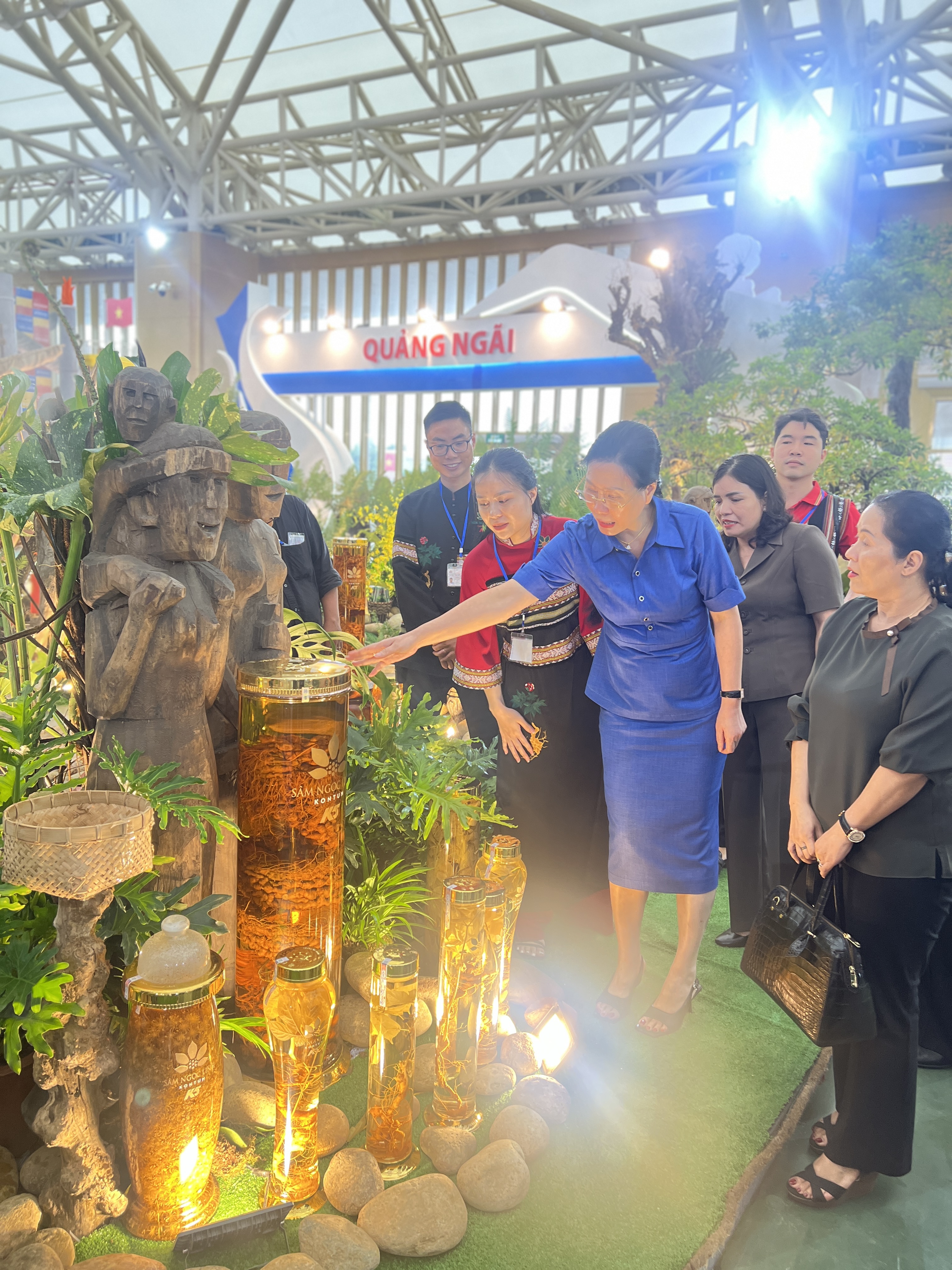 Vị thế của Sâm Ngọc Linh K5 không chỉ được khẳng định qua sự đầu tư hoành tráng mà còn bằng sự tin tưởng của các lãnh đạo cấp cao. Trong khuôn khổ triển lãm, gian hàng đã vinh dự được đón tiếp bà Bùi Thị Quỳnh Vân, Uỷ viên Trung ương Đảng, Bí thư Đảng ủy tỉnh Quảng Ngãi.