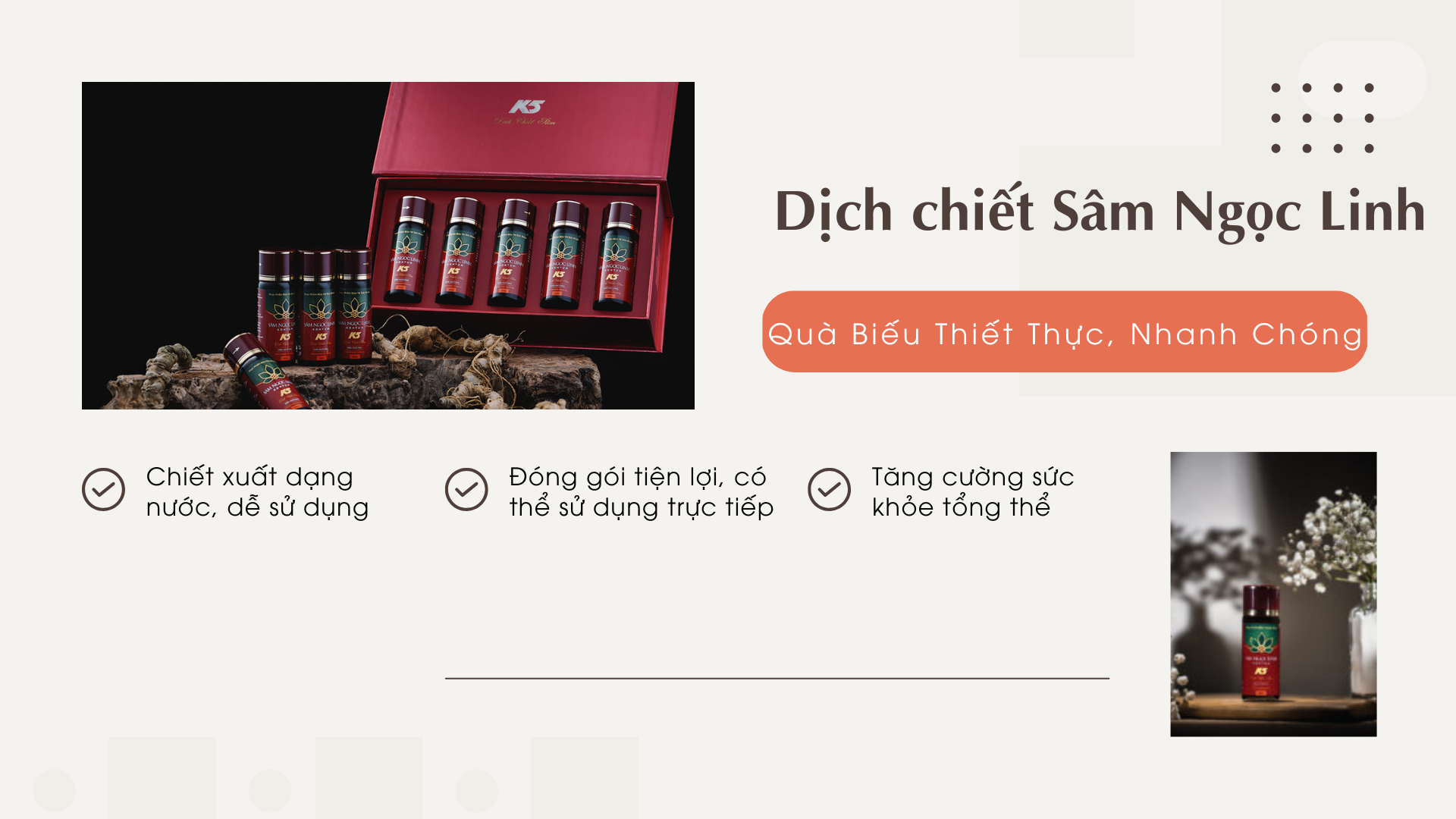 Dịch Chiết Sâm Ngọc Linh K5: Quà Biếu Thiết Thực, Nhanh Chóng