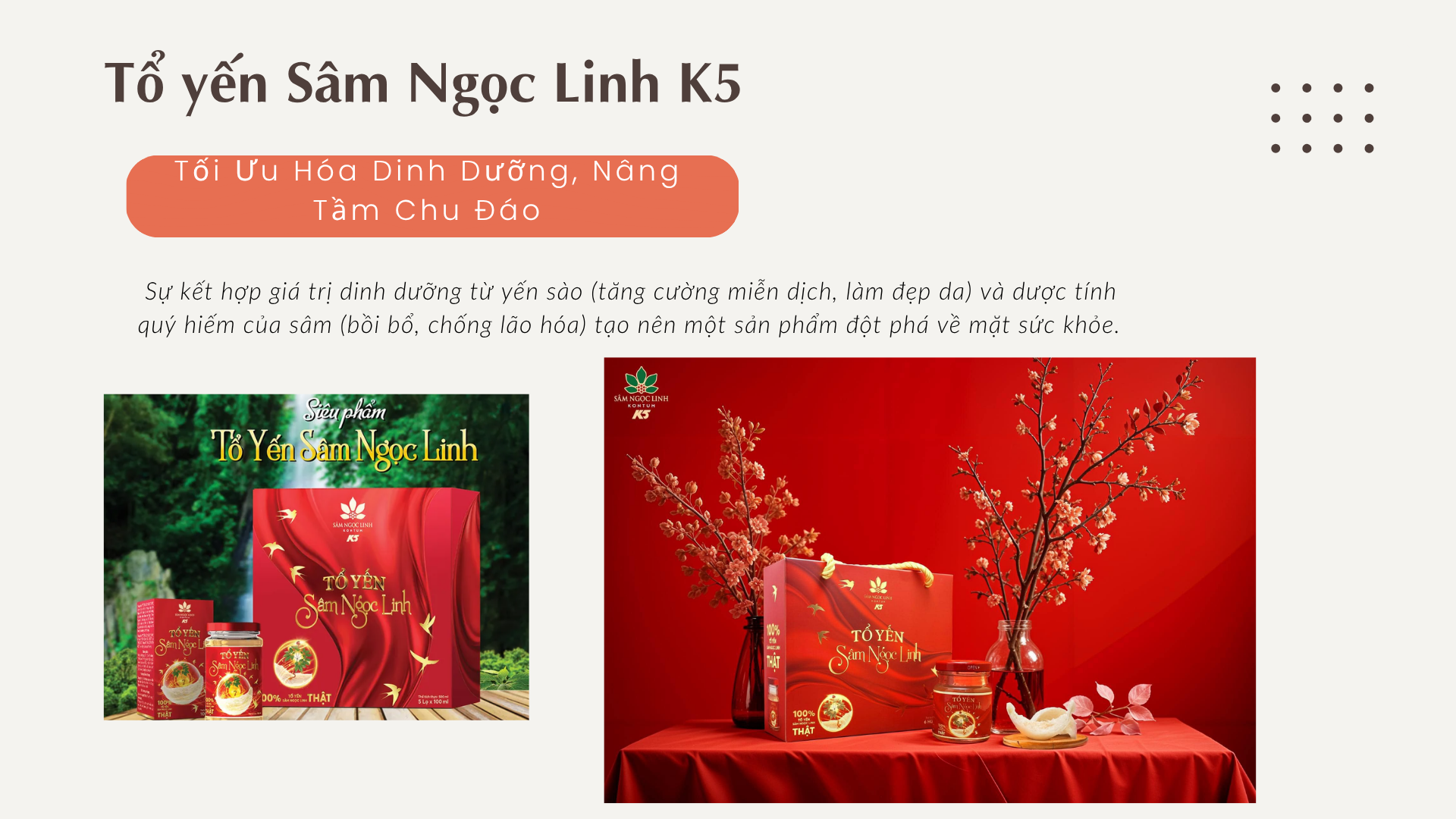 Tổ Yến Sâm Ngọc Linh K5: Tối Ưu Hóa Dinh Dưỡng, Nâng Tầm Chu Đáo