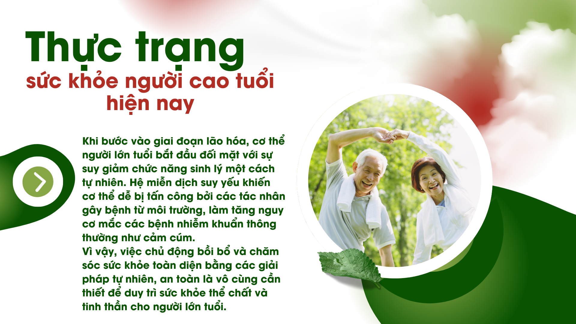 Vì vậy, việc chủ động bồi bổ và chăm sóc sức khỏe toàn diện bằng các giải pháp tự nhiên, an toàn là vô cùng cần thiết để duy trì sức khỏe thể chất và tinh thần cho người lớn tuổi.